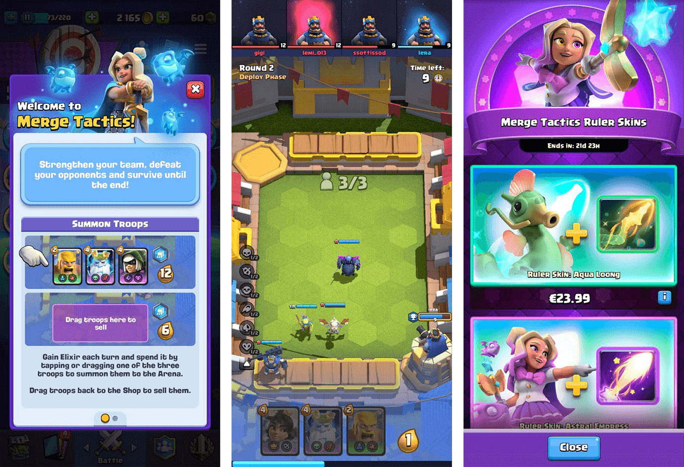 Merge Tactics introduced more variety to the gameplay, deepening engagement and providing new monetization hooks. Alongside this new mode, Clash Royale also introduced a line-up of special offers with upgrades and skins meant exclusively for Merge Tactics. While these IAPs gave players something fresh, they didn’t outshine the old ones, as the game’s classic battle pass still brings in 35% of its revenue!