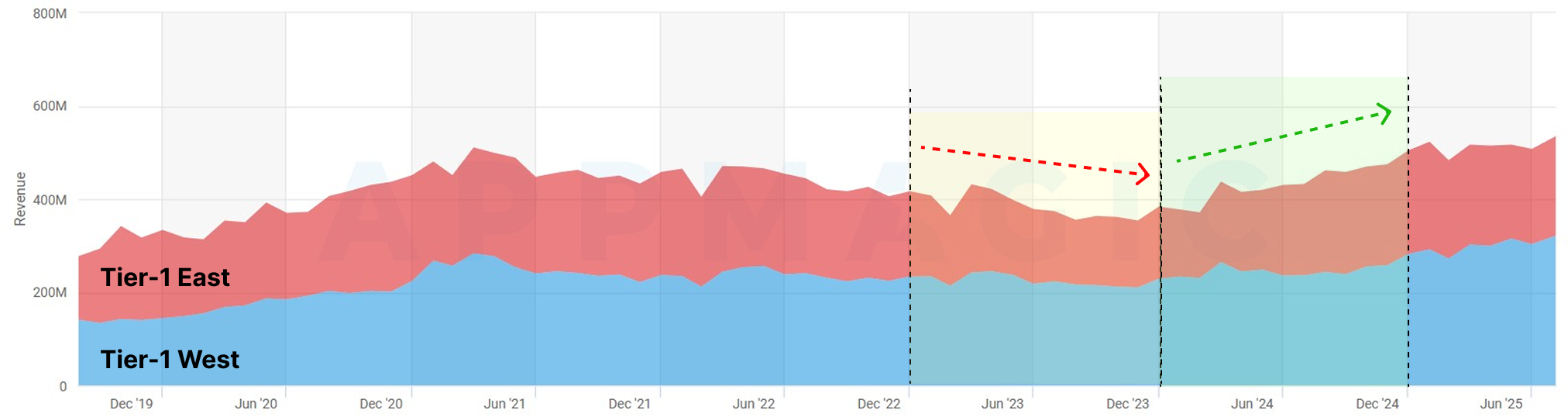 Just look at the numbers: in 2024 alone, IAP revenue in this segment reached $6.8B, and the trend doesn’t seem to be slowing down anytime soon. The genre already hit $3.9B in H1 2025, well on track to surpass last year’s benchmark.