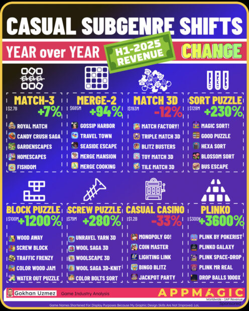 Homescapes ranks as the 4th top-grossing Match-3 game, contributing 10% of the genre’s revenue up to date 💪