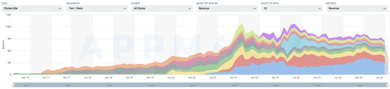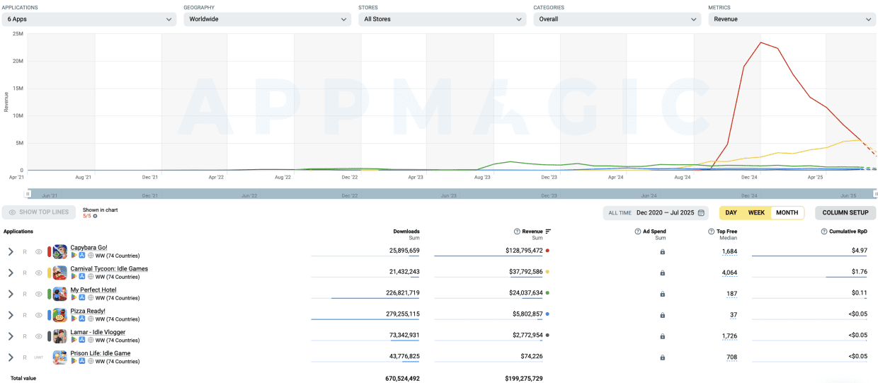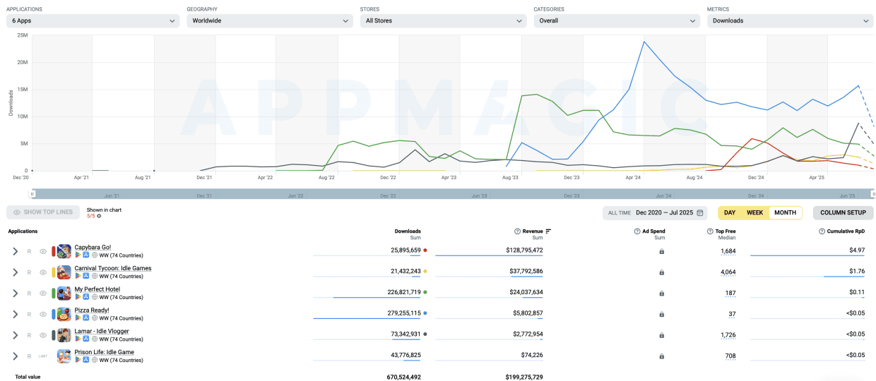 This analysis breaks down six of the most successful idle titles right now, all dominating charts;