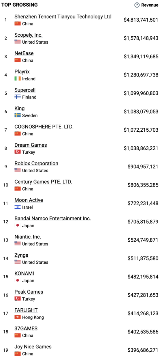 Supercell ranks 5th globally in 2024, generating $1.1 billion in revenue so far.
