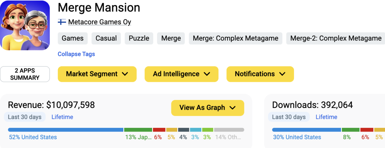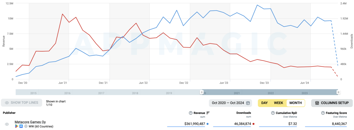 While Merge Mansion continues to perform well, recent figures suggest slower growth, and Metacore may need new updates or innovations to maintain player engagement and sustain its impressive revenue levels in the long term.